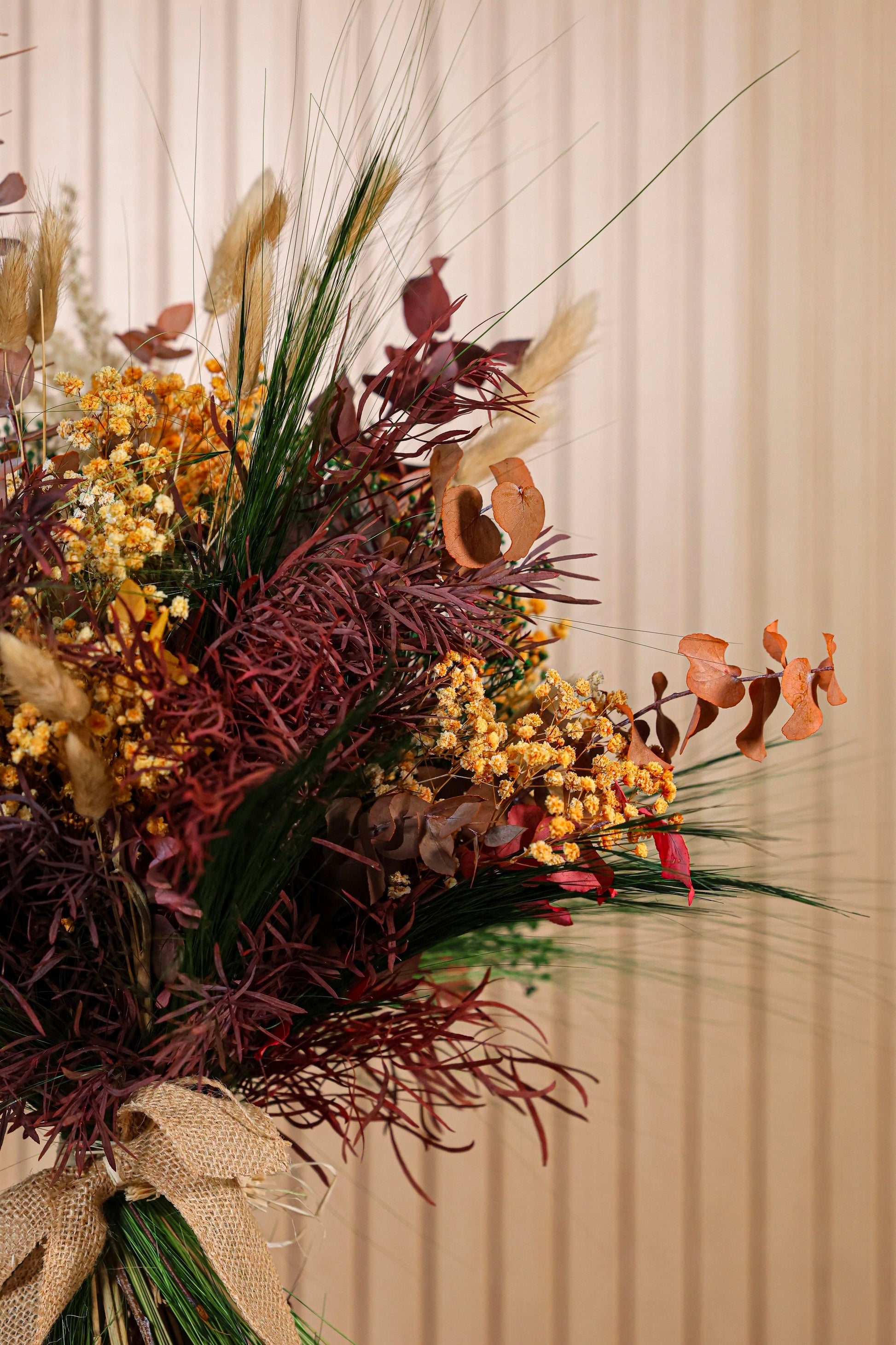 Oasis es un ramo preservado lleno de vida y armonía. Sus tonos verdes intensos se mezclan con matices ocres y granates, creando una composición natural y elegante que evoca la calma de un refugio botánico. Perfecto para decorar cualquier espacio con estilo boho chic.